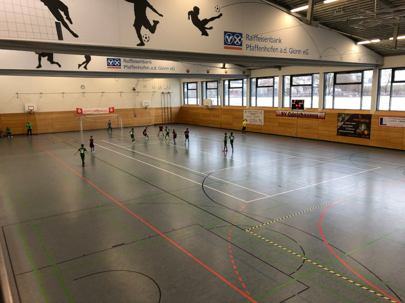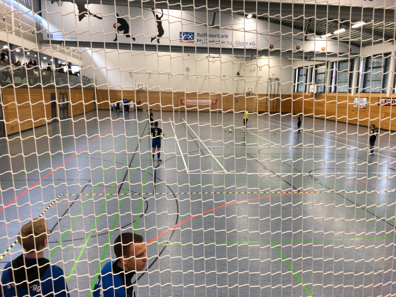 Wir spielen in dieser Halle mit 5 Feldspielern + Torwart
